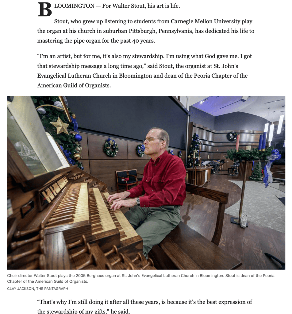 You can spot our very own chapter dean Walter Stout in this article from The Pantagraph about the fate of organs (and organists) in central Illinois. Click here to read
